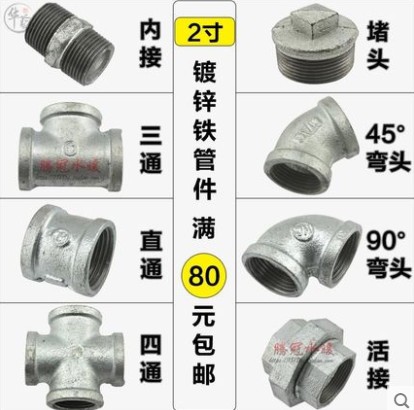 灑水車2寸鍍鋅鋼管道_三通_四通_直通_彎頭_外螺紋連接頭_內絲連接頭_管道堵頭