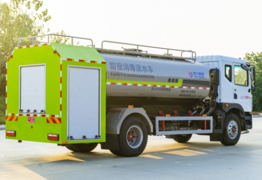 罐體容積為12立方,罐體材質為4mm碳鋼Q235材質,罐內隔板具有防波作用,以減輕汽車行駛時罐體液體沖擊,罐體及整車外形尺寸嚴格按照公告制作。帶大功率專用消防泵,泵可自吸自排,整車前沖、后灑、側噴、帶65消防接口,前封頭帶水位計,罐體一側帶爬梯。帶兩根水管及陰陽端。罐體上可選配帶消防炮,消防炮可全方位旋轉,可連續調成直沖狀、大雨、小雨、毛毛雨罐體顏色:消防紅,罐體兩側噴“消防灑水車”字樣,貼反光標示;消防灑水車一車兩用,即可用作消防車,同時用于綠化灑水車,需要時還可作噴藥車使用,是一款多功能型消防車。